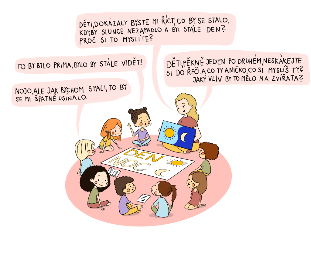 Úvod Gramotnosti Matematická gramotnost Diskuse Lekce Diskuse Matematická gramotnost MATEŘSKÁ ŠKOLA ZÁKLADNÍ ŠKOLA ×↕ Co kdyby nezapadlo sluníčko – ukázka zadání ×↕ Jak aplikovat v mateřské škole ×↕ Nechte děti vyjádřit názor na záludnou otázku: Co by se stalo, kdyby nezapadlo sluníčko?Přibližte dětem problematiku střídání dne a noci.Vyzvěte děti k formulaci odpovědí. Zpět Zkontrolovat Pokračovat Spustit lekci znovu Zpět na gramotnosti