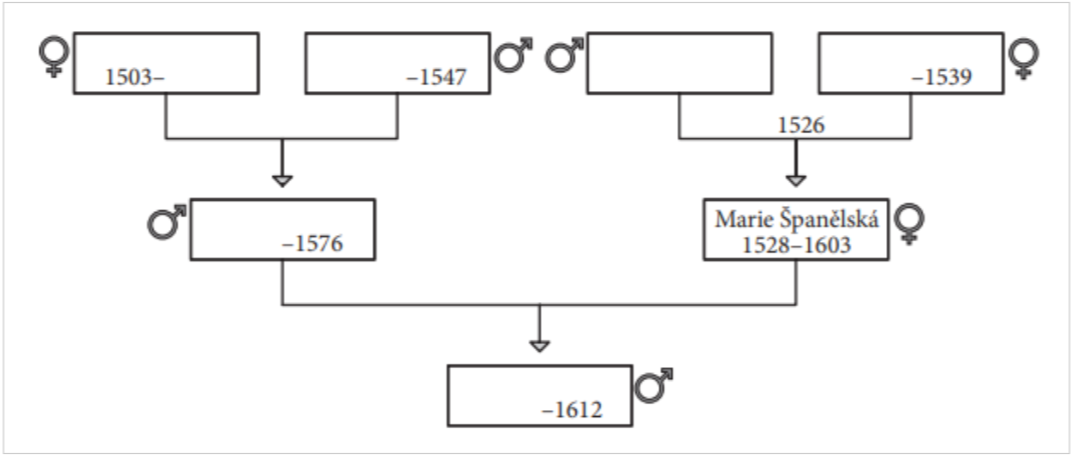 V rodokmenu je pouze jméno Marie (Španělská) a je vymazáno těchto 6 jmen: